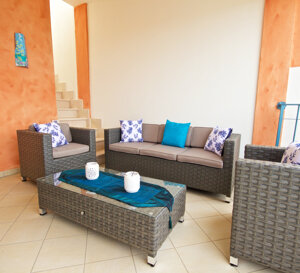 Villa Panoramica e´ una splendida villetta fronte mare che fa parte di un Residence sito in Via Giorgio Gaber (Torre Pali) a poca distanza da una delle più belle e rinomate spiagge del litorale ionico, le Maldive del Salento. La Villetta, quindi, gode di una posizione ottimale che unisce la tranquillità di una strada poco trafficata a quello della comodità data dalla breve distanza dal mare (circa 950 mt.). La casa offre tutto ciò che una persona ricerca e a cui non vuole rinunciare pur essendo in vacanza, tra cui: asse e ferro da stiro, lavatrice, stendibiancheria, tv a schermo piatto nella zona giorno con ricevitore satellitare, asciugacapelli, zanzariere su tutti gli infissi, aspirapolvere e ovviamente non può mancare il climatizzatore su entrambi i piani. L´abitazione dispone di un ampio cortile adatto ai bambini e un giardino reso particolare per la presenza di bellissime palme.